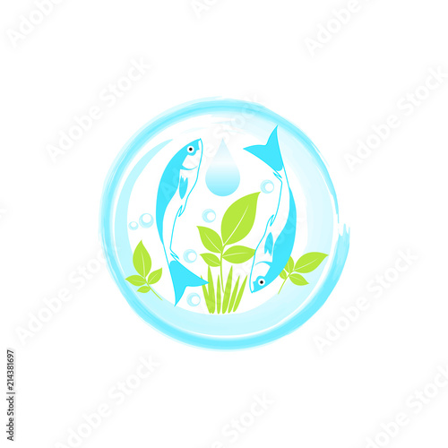 Blue Fish In Circle Aquaponics System With Fish Icon Logo Sign